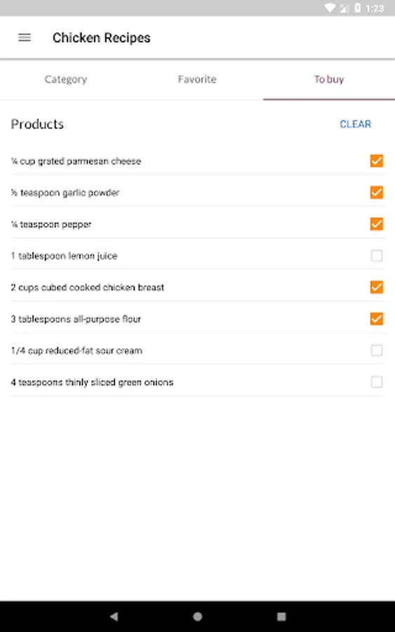 - enjoy section To buy - just add the products from the recipe here and use the shopping list when you go to the store. The application works offline, so the list of products for will always be with you