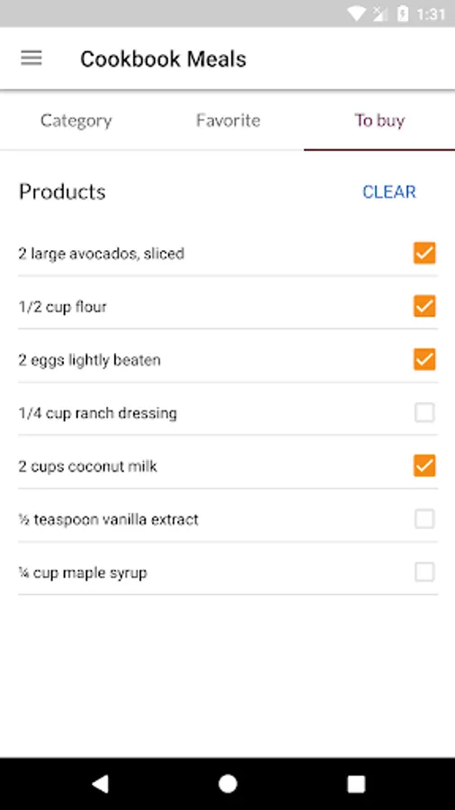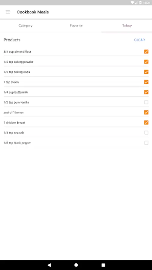 - enjoy section To buy - just add the products from the recipe here and use the shopping list when you go to the store. The application works offline, so the list of products for will always be with you