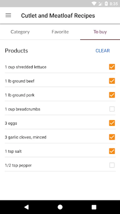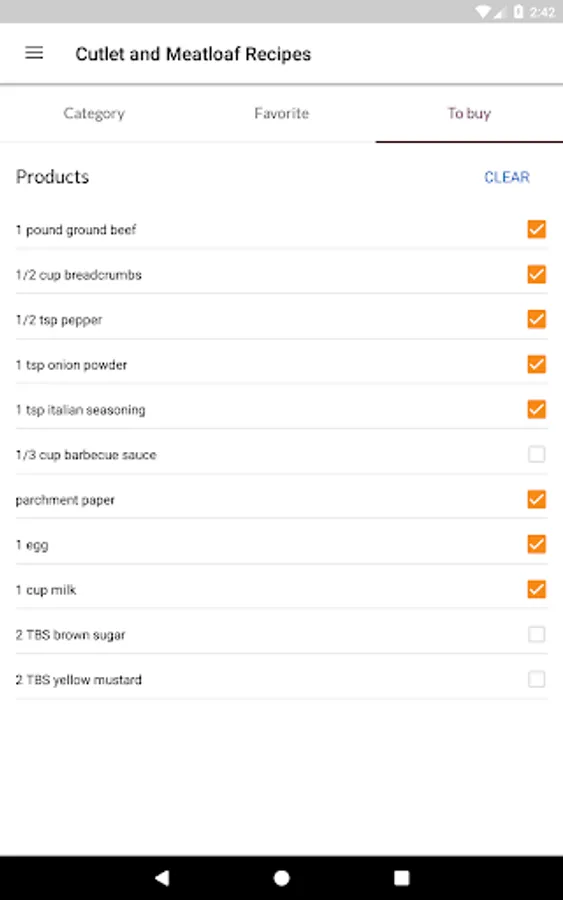 - enjoy section To buy - just add the products from the recipe here and use the shopping list when you go to the store. The application works offline, so the list of products for will always be with you