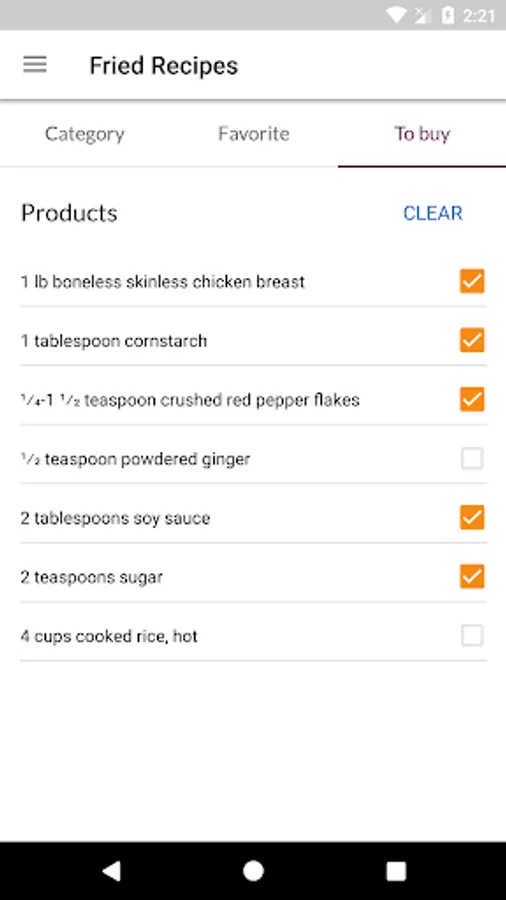 - enjoy section To buy - just add the products from the recipe here and use the shopping list when you go to the store. The application works offline, so the list of products for will always be with you