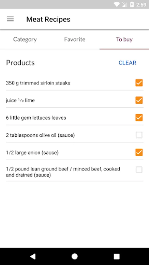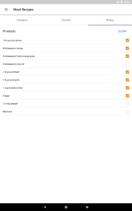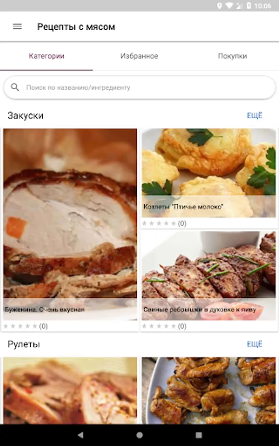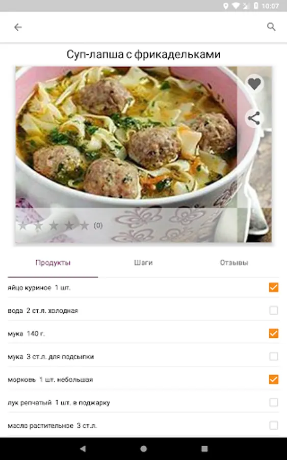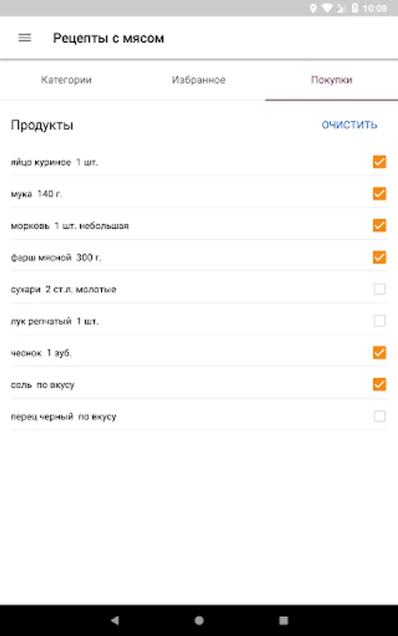 - enjoy section To buy - just add the products from the recipe here and use the shopping list when you go to the store. The application works offline, so the list of products for will always be with you