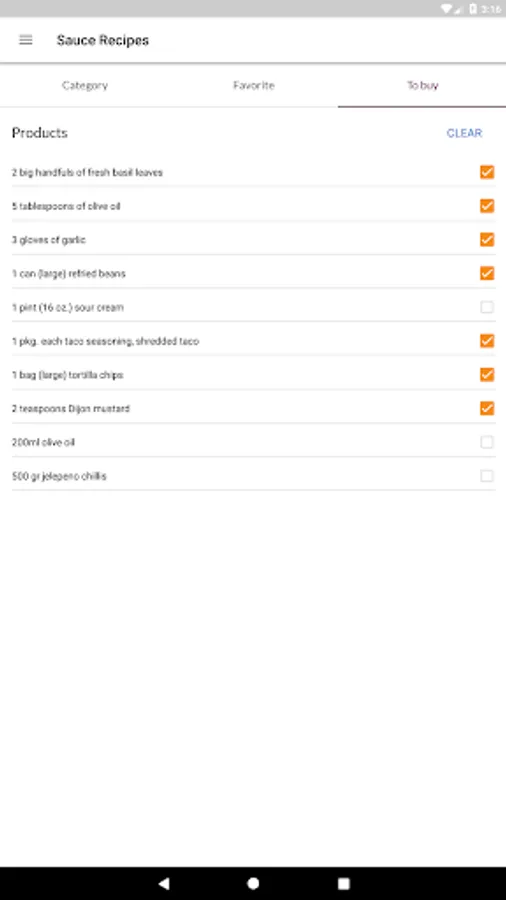 - enjoy section To buy - just add the products from the recipe here and use the shopping list when you go to the store. The application works offline, so the list of products for will always be with you
