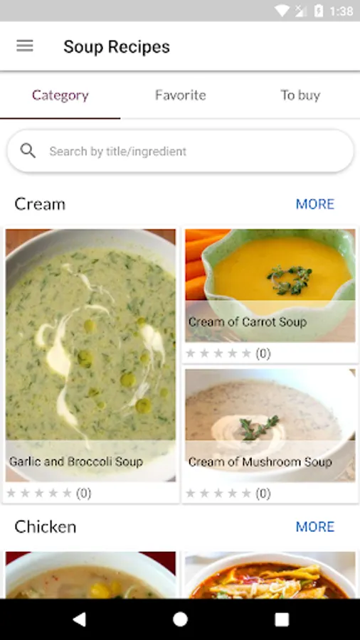 - simple search of recipes by the name or ingredient
