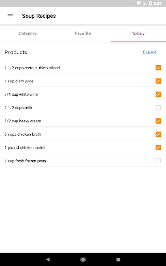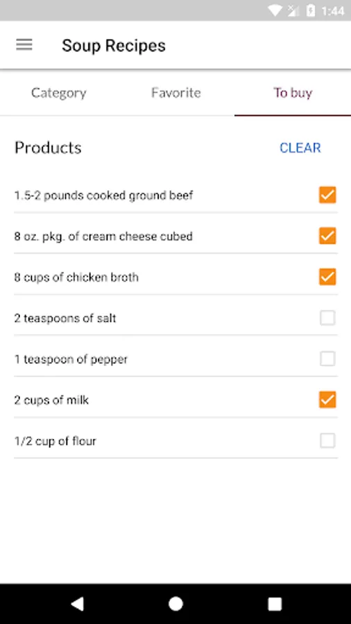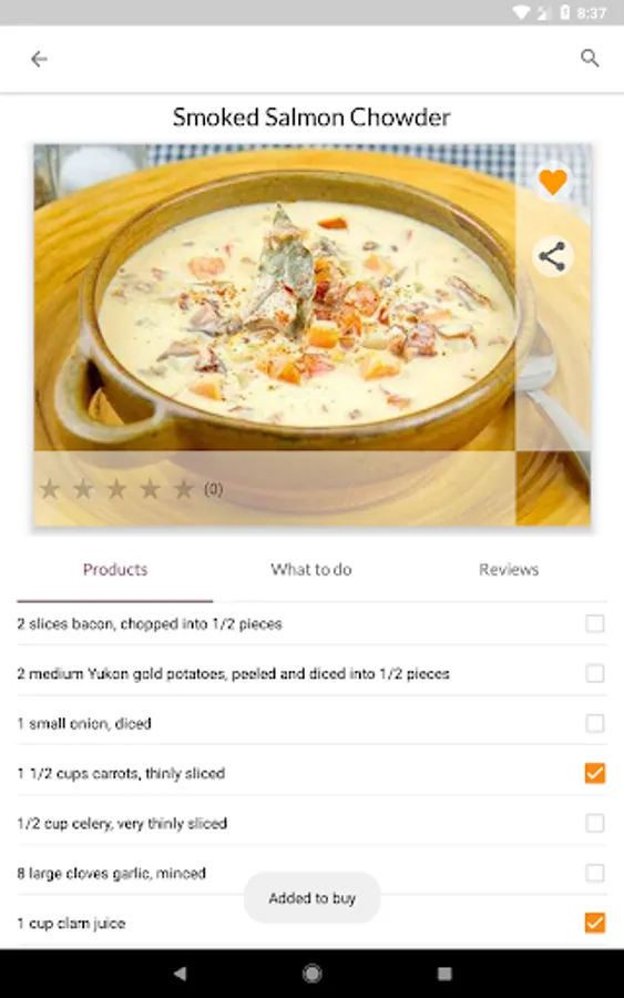 - enjoy section To buy - just add the products from the recipe here and use the shopping list when you go to the store. The application works offline, so the list of products for will always be with you