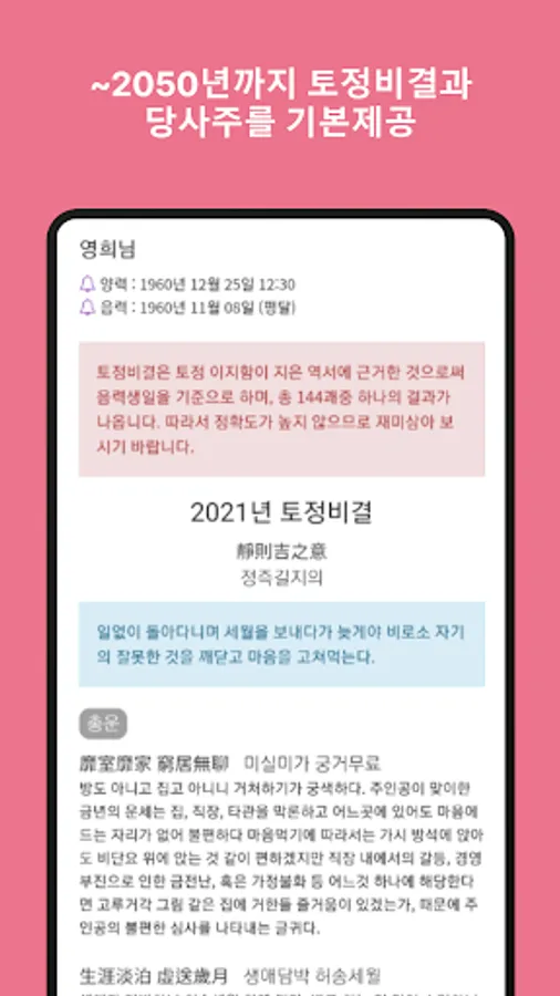 There is no detailed fortune-telling because it is not an app that solves fortune-telling.