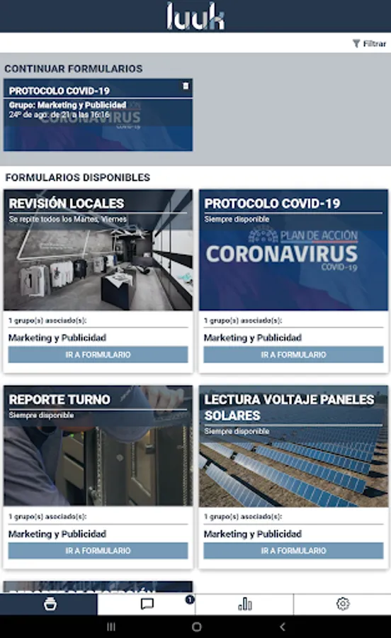 All forms record important and relevant data for many aspects of your business. Through luuk we take care of presenting you the information in an orderly and clear way, in order to be able to make decisions with concrete and real data.