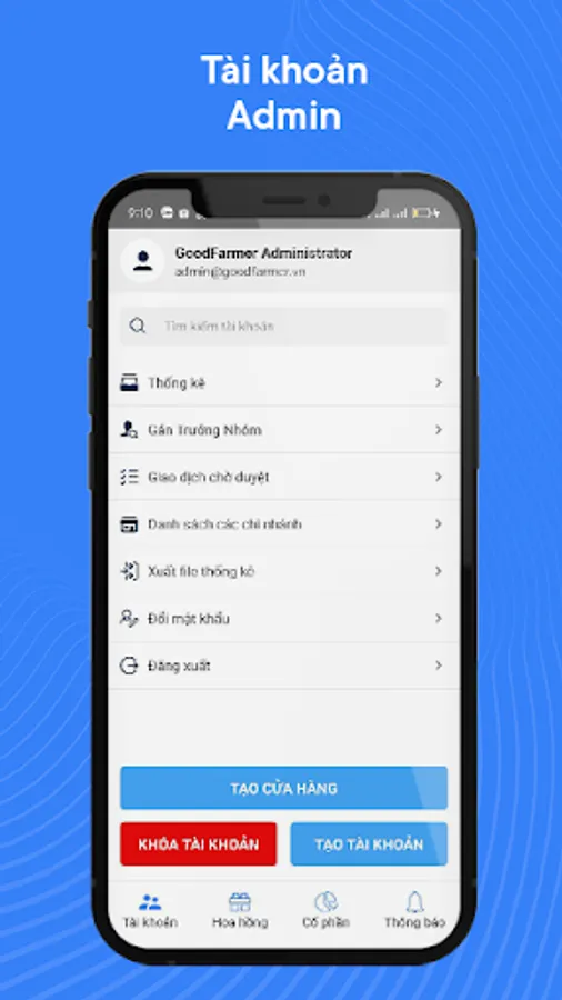 Good Farmer Admin Application provided by Good Farmer Vietnam JSC is used for Team Leaders, Branch Directors, and Area Directors to manage orders and coordinate with farmers. Accountants can easily check and reconcile information and approve orders. All management tasks such as coordination, checking and approval are performed on employees' smart phone. Hence, it helps to improve sales ability and bring the best benefits for salespersons. Application also helps Farmers increase their income through using the Good Farmer application.