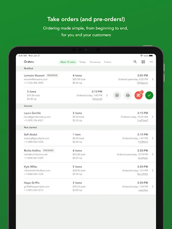 Take orders while on the go with pre-ordering and online ordering options.