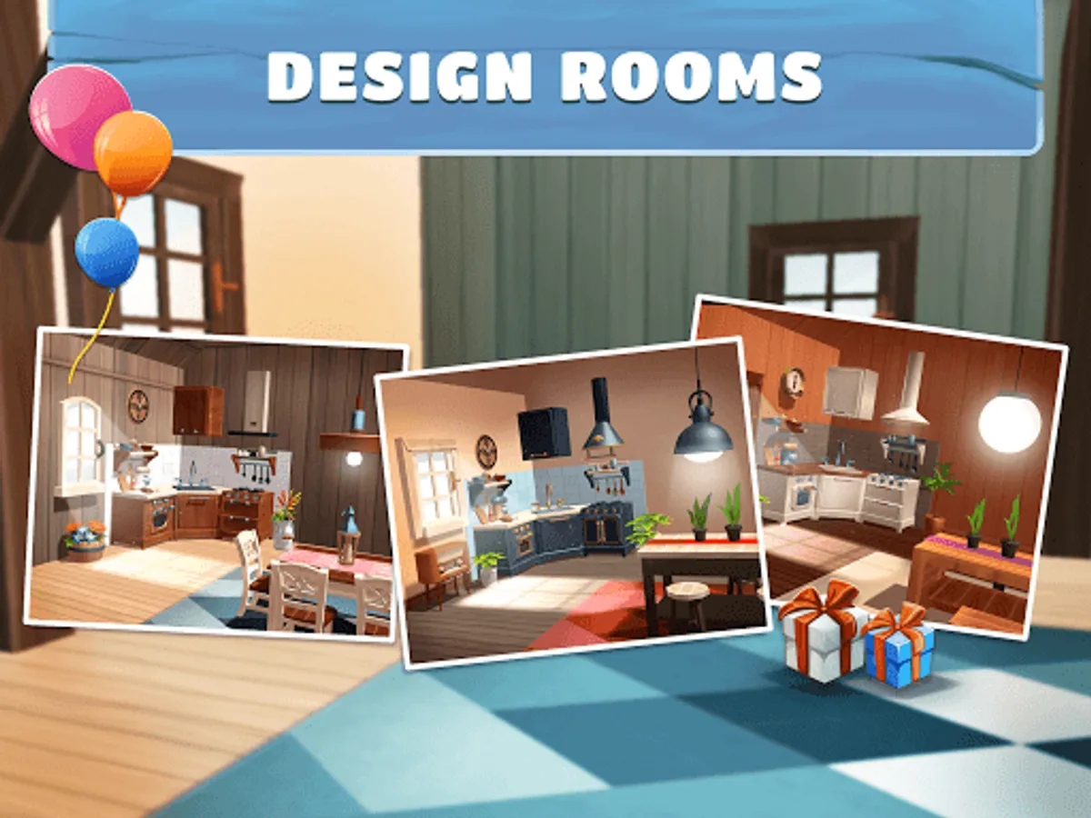 🏠 Design Homes: Renovate and decorate different room styles including family-friendly farmhouses, cozy bedrooms, rustic kitchens, and stylish bathrooms. Help clients ranging from newlyweds to families and elderly people.