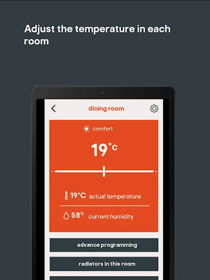 You will define the ideal comfort temperature and the energy saving temperature for each of your rooms.