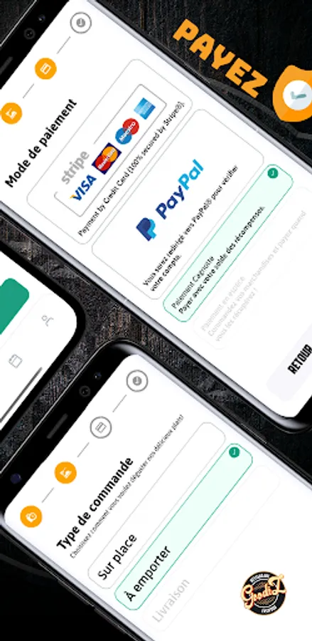 Choose your payment method and pay for your food. We do not save your payment data, payment transactions are fully processed and secured by our partners Paypal® & Stripe®.