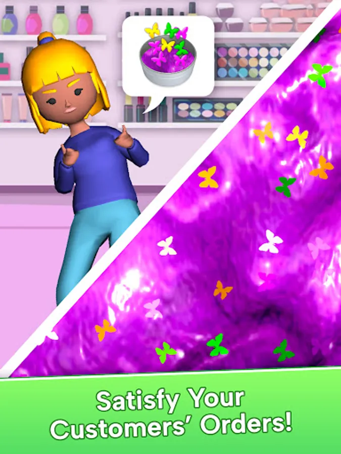 Get requests from clients and satisfy your customers’ orders by choosing the right slime ingredients, colors, and decorations. Relax your mind while running your own slime shop and growing it into a slime empire! The more you play the greater and more awesome your slime empire will be. As you grow your slime-selling business, you'll face new challenges and opportunities. Keep your customers happy by fulfilling their orders quickly and accurately, and use your earnings to unlock new slime types, colors and decorations. With a wide variety of slime types, colors, and decorations, the possibilities are endless!
