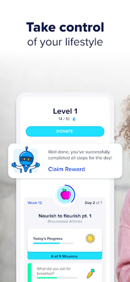 Sidekick's Rheumatoid Arthritis program supports you in building long-lasting healthy habits so you can work towards improving your mental health and well-being. The program features functions to help you stress less, fight fatigue, and manage your pain.