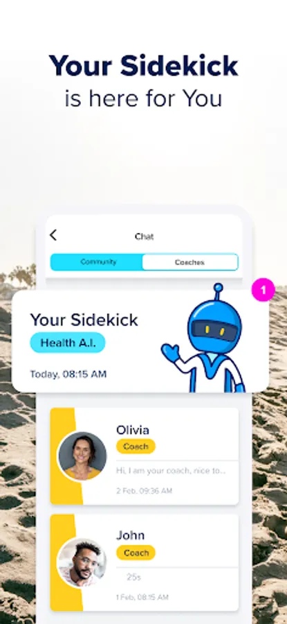 Sidekick provides you with personalized support, as you'll have the option to communicate with specialized health coaches in the app. Your coach can work with you throughout your journey and encourage you to achieve better health outcomes.