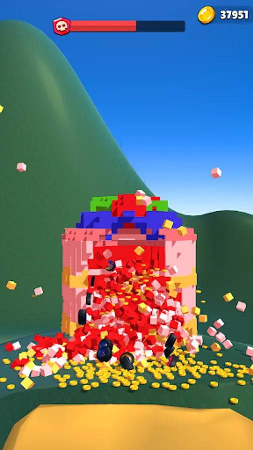 Buy wheels and merge them. The higher the level, the stronger the destructive power of the wheels. When the wheels start rolling down, hold the screen to accelerate.