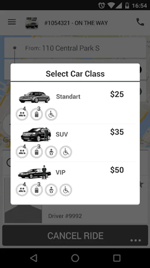 • Driver location and ETA