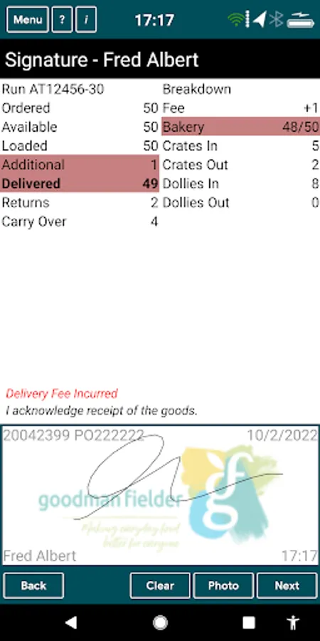 Direct to Store delivery application for Goodman Fielder Contractors.