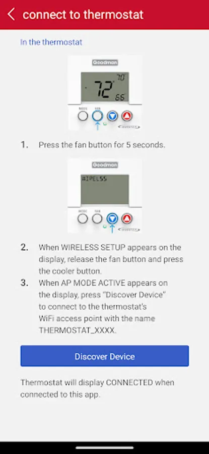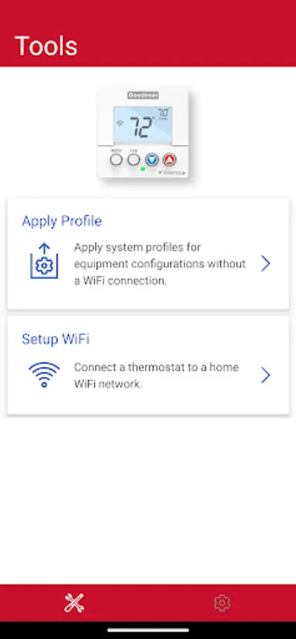 The Goodman Installer App allows users to easily setup and configure Wi-Fi settings for thermostats.