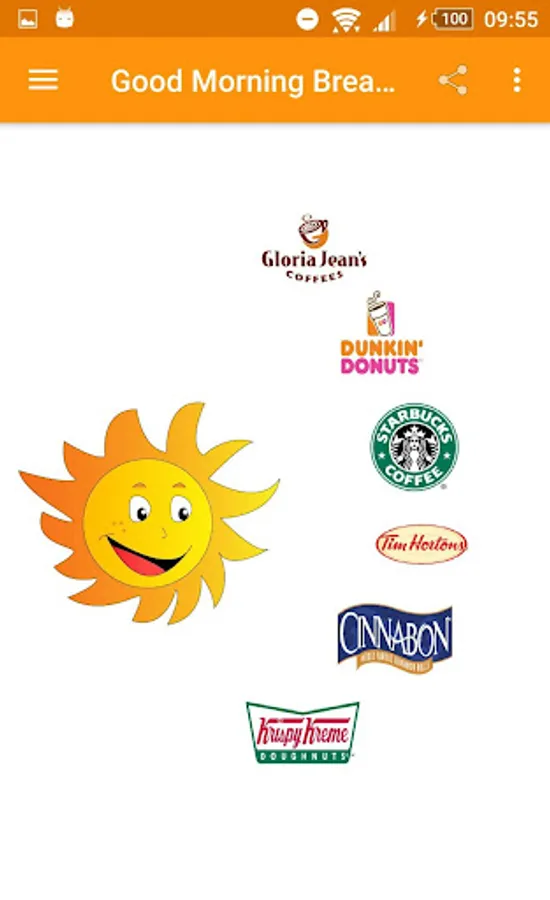 No more searching for what to eat at breakfast everyday, Good Morning Breakfast has all your favorite places in one app. Choose your breakfast from a lot of menus of Dunkin' Donuts, Startbucks, Cinnabon and more.