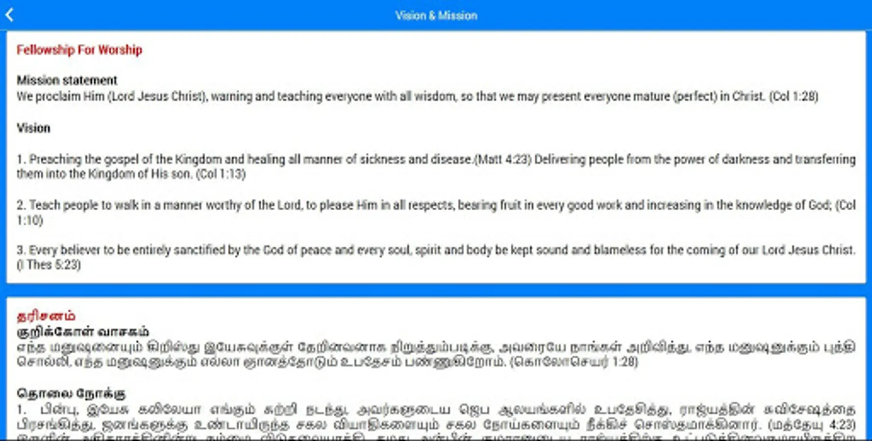 நம்முடைய நோக்கம் ஒவ்வொரு மனிதனையும் மனுஷியையும் கிறிஸ்து இயேசுவில் தேறினவர்களாய் நிறுத்துவது தான். மேலும் ஒவ்வொருவரும் தங்கள் பணி இடங்களில் சாட்சி உடையவர்களாய் வாழ்ந்து ஆண்டவரை குறித்து சாட்சி பகர வேண்டும்.