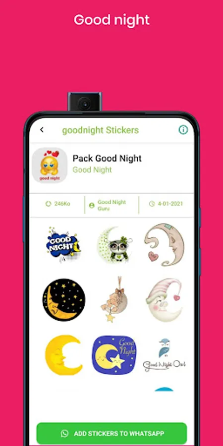 🤗Introducing Good Night Stickers for WhatsApp WASticker! Express your warmest wishes and create a serene atmosphere in your conversations. Discover a delightful collection of stickers featuring moon, stars, and soothing messages. Download now and send sweet dreams to your loved ones🤠