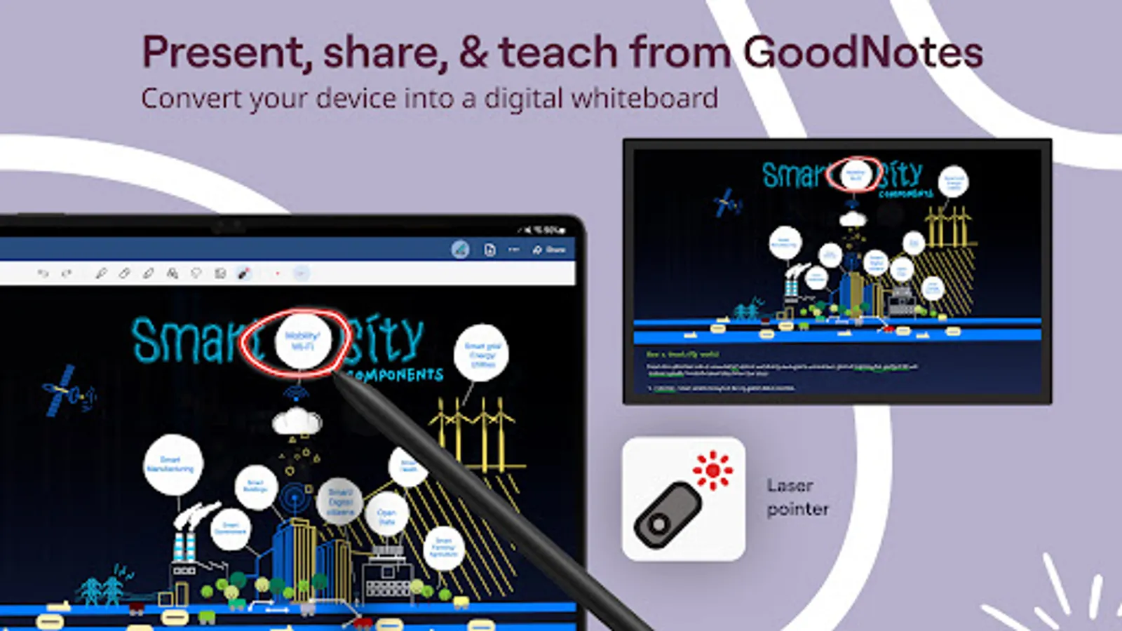 ■ Present your notes, slides, and content directly from Goodnotes with a built-in laser pointer.