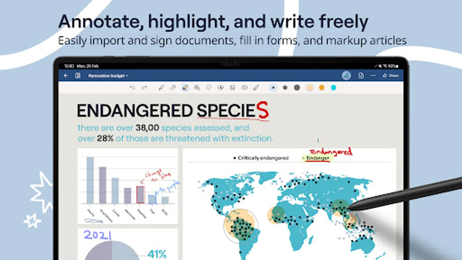 ■ Import PDFs and sign documents, fill in forms, and markup articles.
