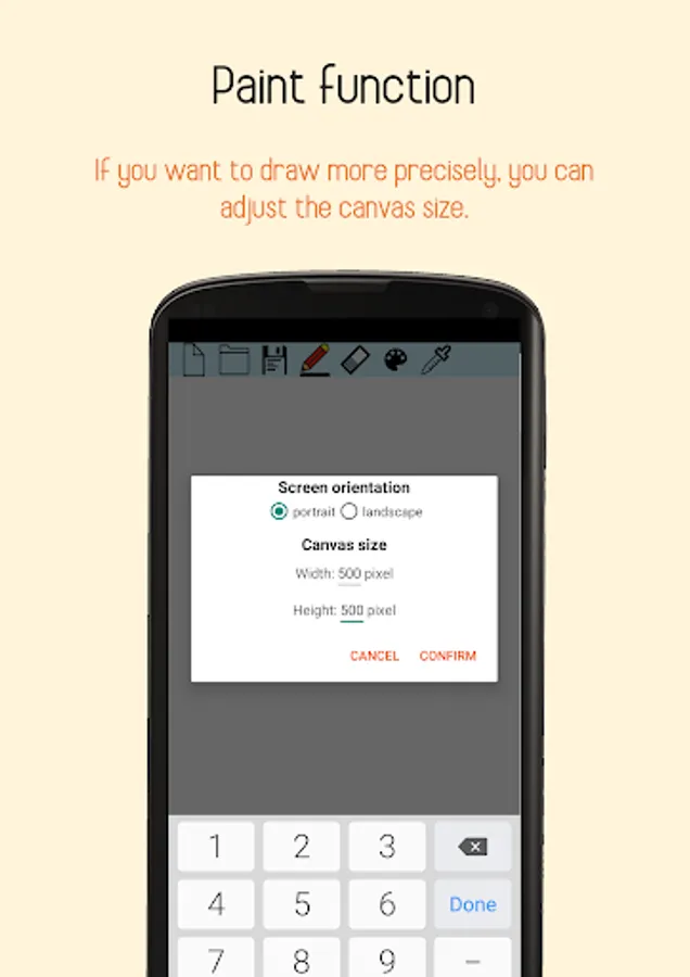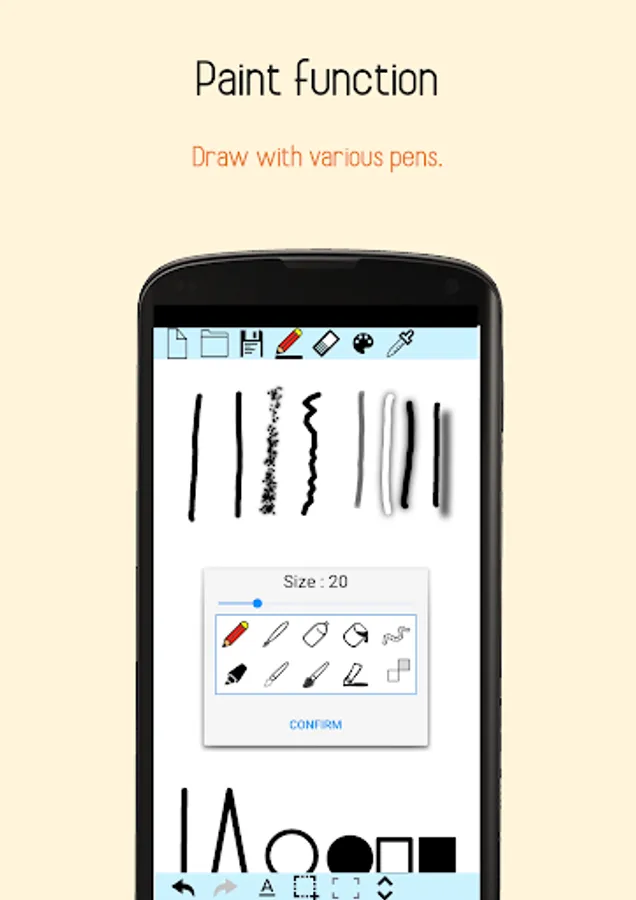 *Sharing : You can set the name of drawing, its save directory, and share the drawing via various app to brag of it!