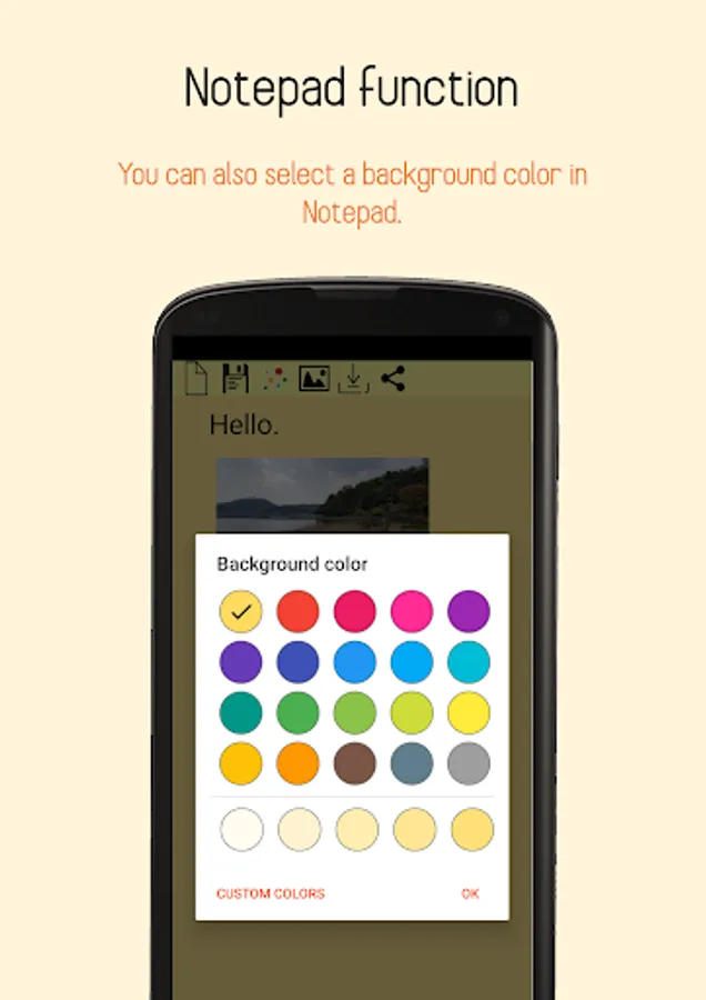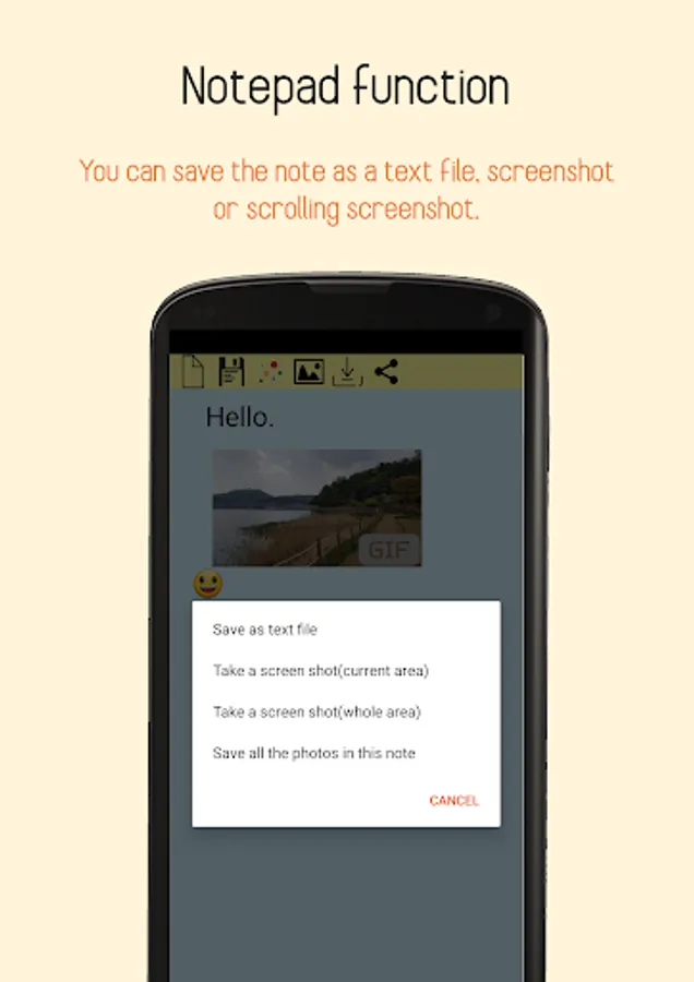 *Able to save the note in the app, or save as text file and image file which is screenshot of notepad.