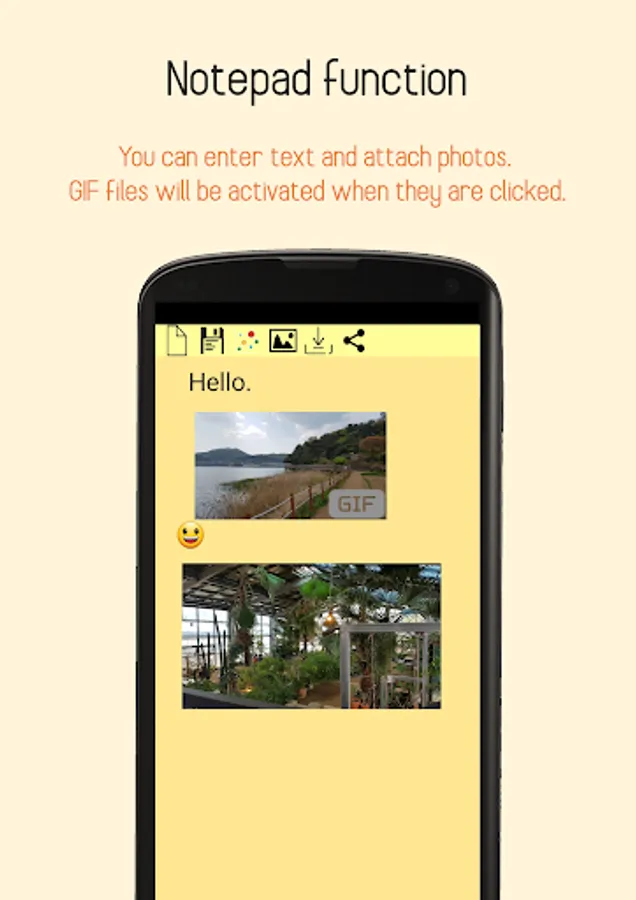 *Attaching a picture(GIF, PNG...): you can attach a photo if it is needed. Of course, it is possible to magnify or curtail by touching photo.