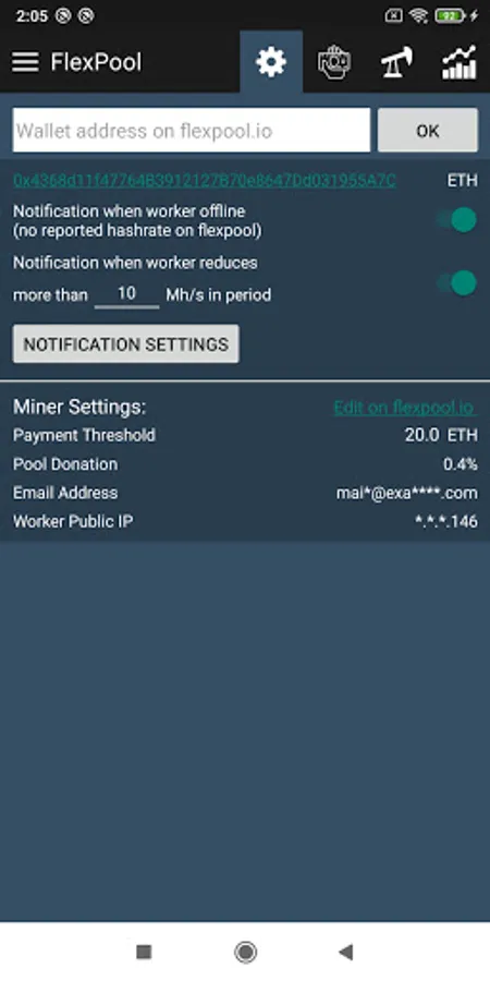 FlexPool Monitor & Notification is 3rd application for checking status on FlexPool (flexpool.io).