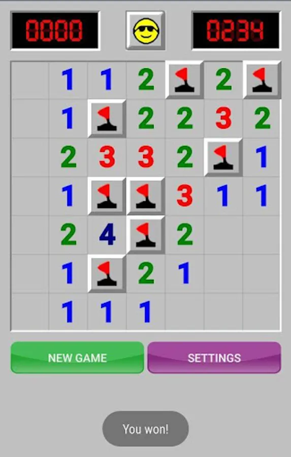 Minesweeper is a single-player puzzle video game. The objective of the game is to clear a rectangular board containing hidden "mines" or bombs without detonating any of them, with help from clues about the number of neighboring mines in each field. The game originates from the 1960s, and has been written for many computing platforms in use today. It has many variations and offshoots.