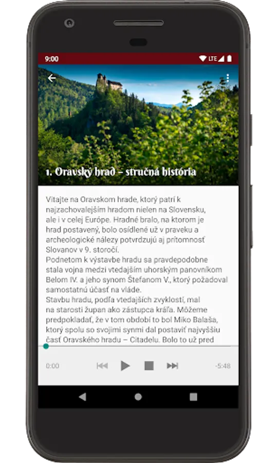 Listen to the narrative that outlines the history of Orava Castle. It includes 24 audio points distributed around the castle areal, available in Slovak, English, Polish, German, Hungarian and Russian language. You can find an audio recording, typescript and photos at each audio point. It is enough to follow the tour guide who takes you around the castle. Each important point is marked by a numbered stand so that you know when to play the next audio loop.