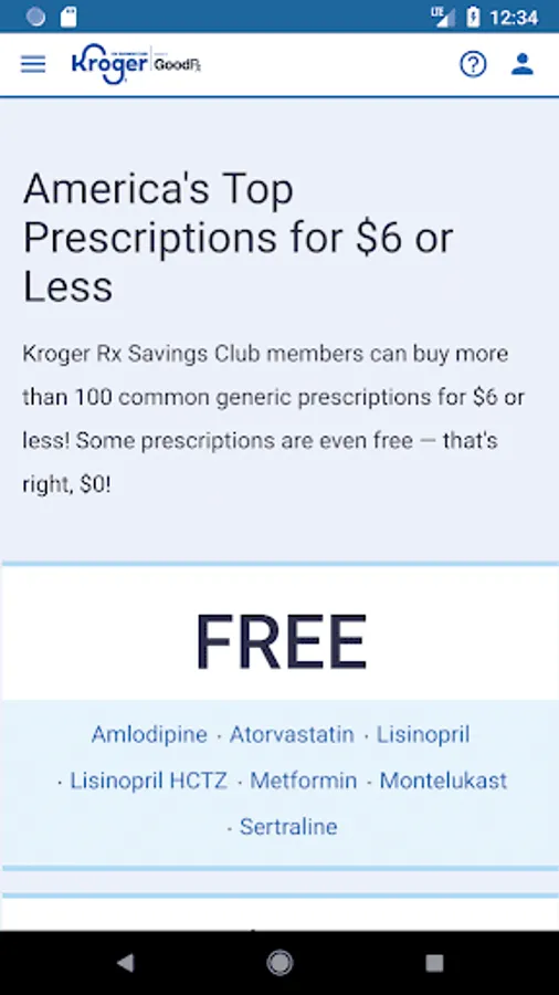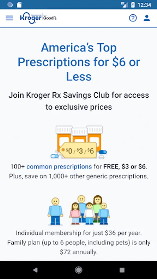 Save up to 85% on your prescriptions with the Kroger Rx Savings Club. Kroger Rx Savings Club members can buy more than 100 common generic prescriptions for $6 or less. Some prescriptions are even FREE - that's right, $0! Our prices are so low, they may beat your insurance co-pay. Plus, there are no forms, no pre-approvals or paperwork required. Kroger Rx Savings Club is a paid membership program. Your membership card is built right into the app - just show your pharmacist to save. Use the app to sign up, see past purchases, look up current prices and drug information, and more. You can use your membership card to save at any of Kroger's family of pharmacies across America.