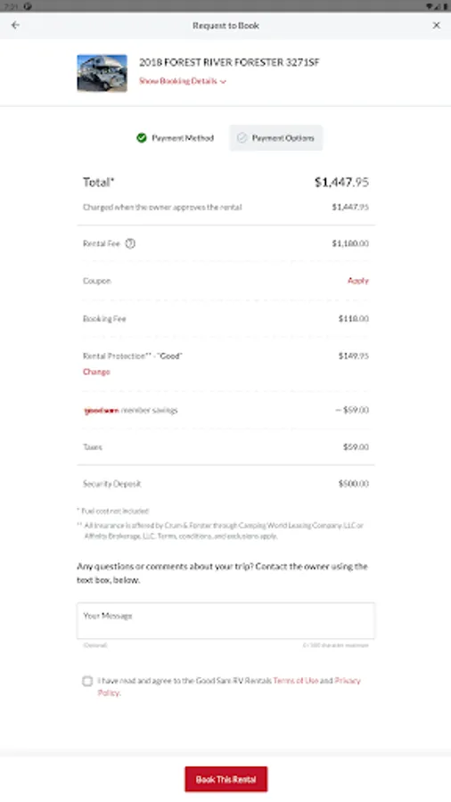 Confidently book your trip through Good Sam Travel with payment protection, guidance for new renters, and in-app messaging. Experience more on your next trip through a seamless and easy rental and booking process. What’s more? We charge 75% less in fees than other similar platforms.