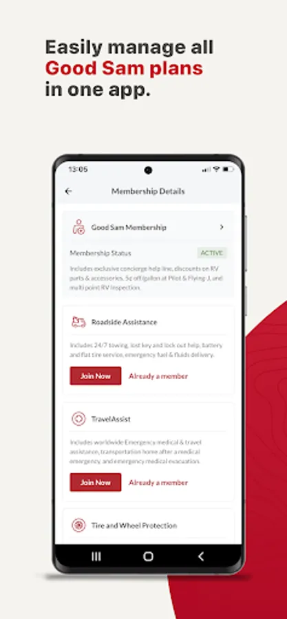 Manage all Good Sam Membership and plans accounts or join if not yet a member or plan owner, all within the Good Sam Travel app.