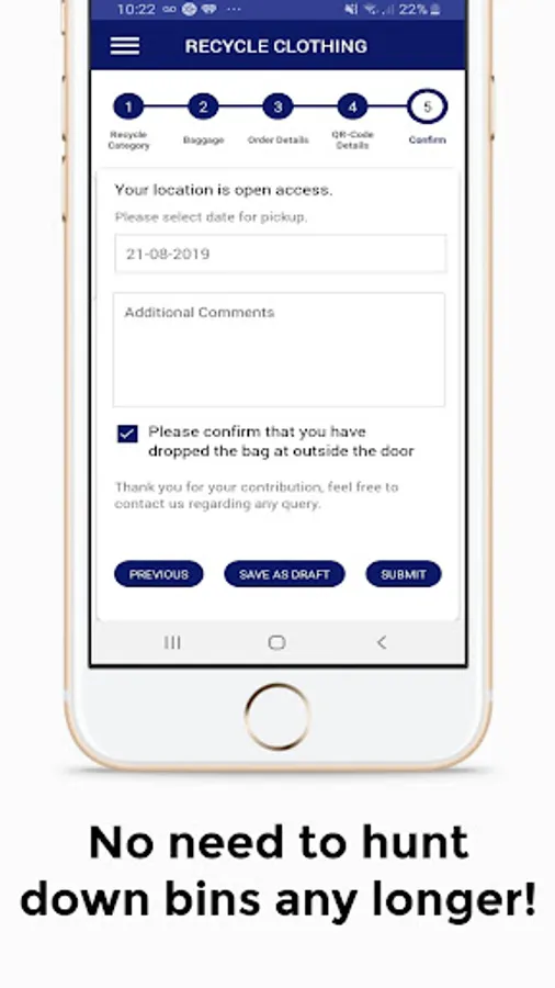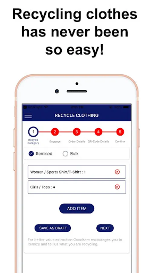With "GoodRe" GoodSam offers a convenient and incentive-based program which makes reusing and recycling your used clothes and used shoes easier than ever. We will come to you and avoid you from chasing down the bins. We partner with local operators in your area and offer a convenient home pickup as per your schedule. All this can be done using this mobile app at your fingertips. We have big plans to make keeping clothes out of the trash easier for you.
