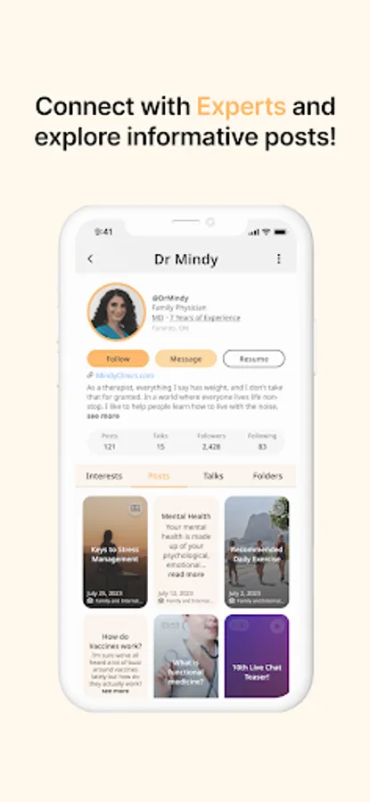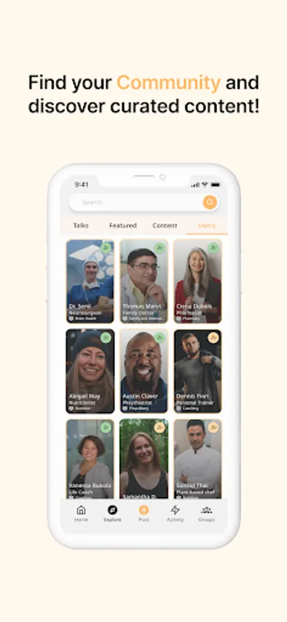 POSTED CONTENT - Your feed emphasizes the discoverability of new content and contains Expert-led audio talks, pictures, videos, and thought-pieces. Through this content, Experts share their knowledge with the community and Users can share their experience with health & wellness topics that you’re interested in.