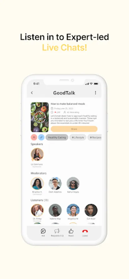LEARN FROM THE EXPERTS - GoodTalks are interactive live audio chats – led only by vetted Experts - that create a space for Experts and Users to engage in meaningful conversation and interact with their communities. Live chats can take the form of info sessions, Q&As, panels, and more.