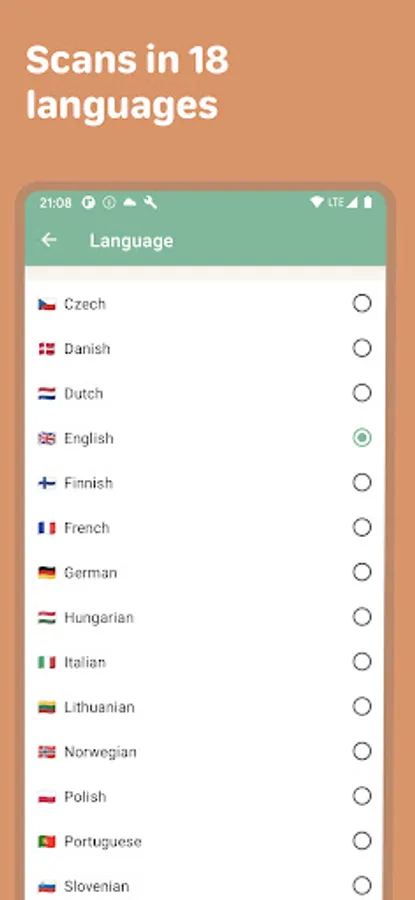 Czech, Danish, Dutch, English, Finnish, French, German, Hungarian, Italian, Lithuanian, Norwegian, Polish, Portuguese, Slovenian, Spanish, Swedish, Turkish