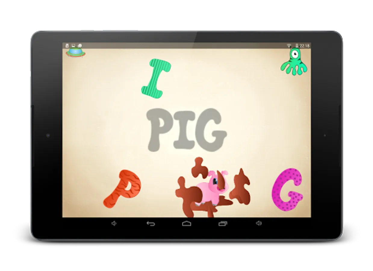 Our game includes 26 words that can be explored, listened to and learnt by all children. Each word features an interactive letter puzzle with talking animated letters and an animation illustrating the definition of the word. Thus, the child can learn the letter sounds and the word in English, while learning how to spell! If children click on an animation, it will become interactive and will do funny actions, so don't forget to click anything you see – there are many surprises waiting for you! :)