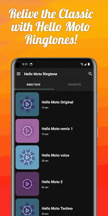 You can find the original hello moto ringone in this App. But if you looking for something different, no worries, there is also some remix version of Motorola ringtone hello moto and custom sized ringtones to use as notification or text message, there is also in this app some old versions of Motorola ringtones.