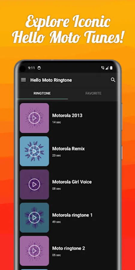 Hello Moto ringtone app contains the original hello moto and other Motorola ringtones which you can set as phone ringtone, contact ringtone, notification sound & alarm tone.