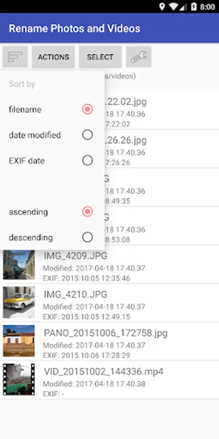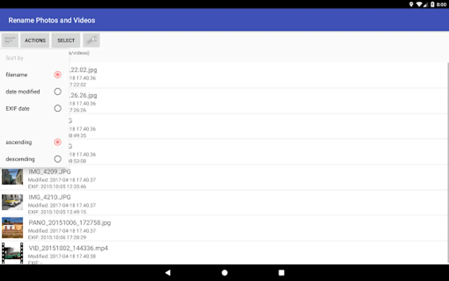 If you want to view your photos and videos in a chronological order within a gallery app, sorting by filename often doesn't work since photo filenames begin with "IMG_" or "PANO_" and videos with "VID_" or "MOV_" (depending on your device). Panoramas and videos will be shown last.