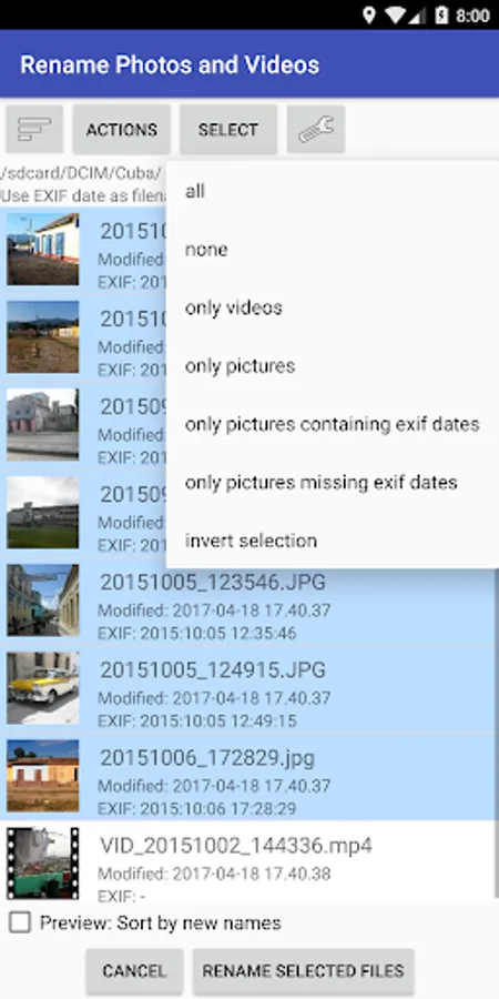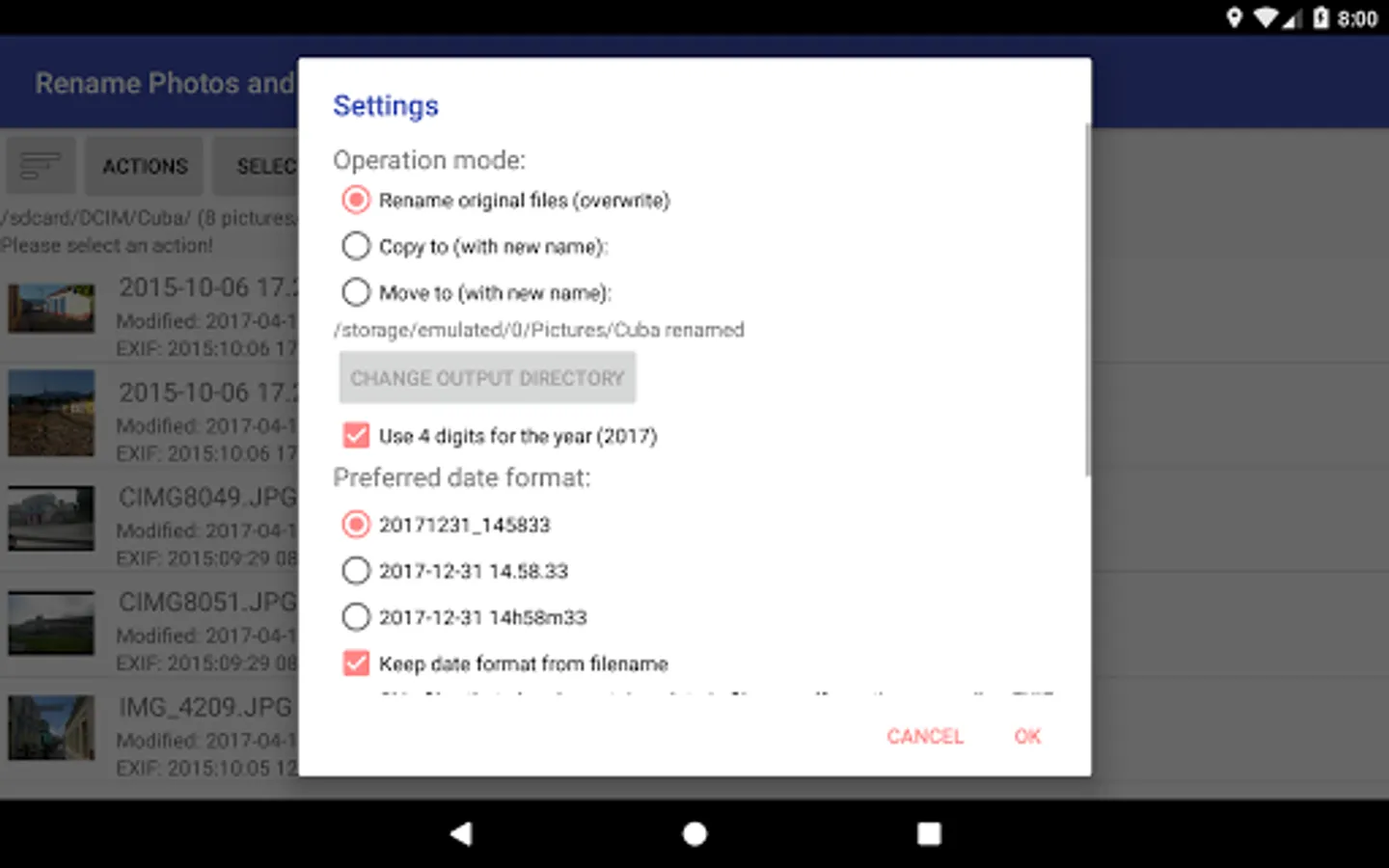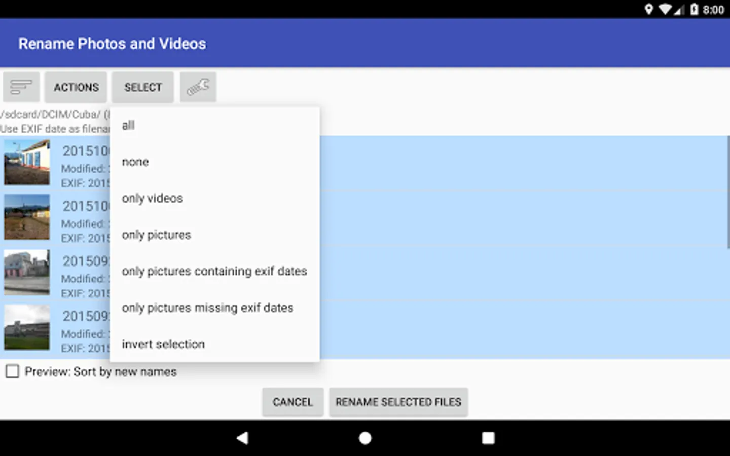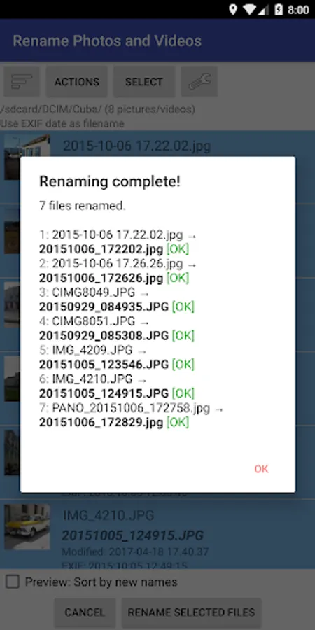 For these reasons, it makes good sense to rename your photos and videos with this app before transferring them to another device (smartphone, tablet or PC), so that all filenames begin with the date taken.