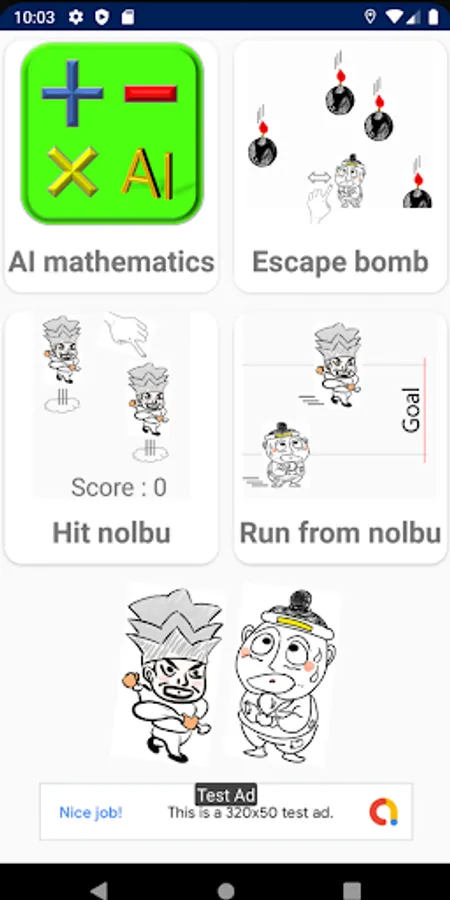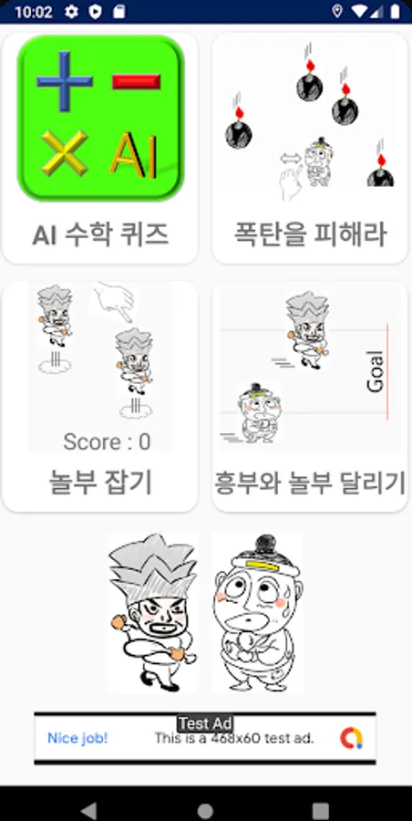 It is important to keep using the brain to prevent dementia. Rather than just repeating games, Heungbu and Nolbu characters offer simple mini-games like running, avoiding bombs, catching moles, and solving math problems. I think the higher the level, the faster it will speed up the reflexes training. Try your best to touch it.