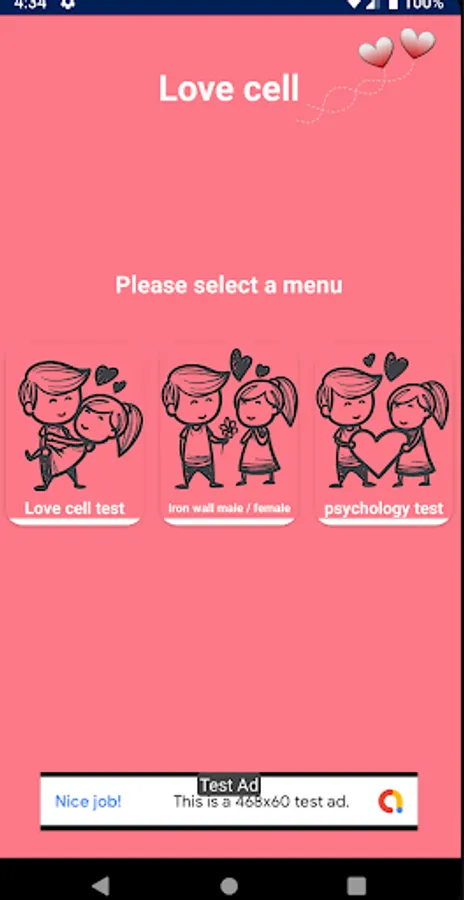 This app contains 3 simple tests for checking your romance cell. please enjoy