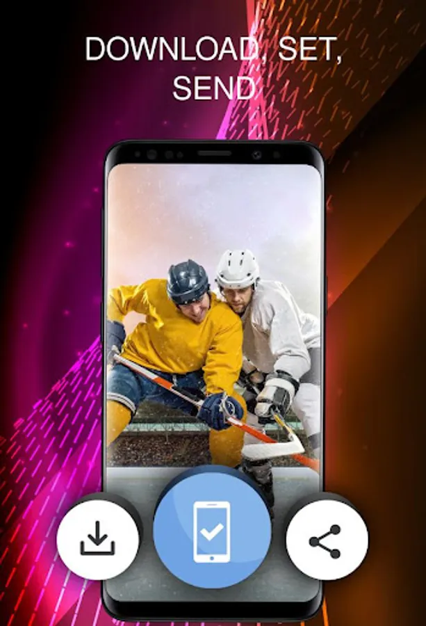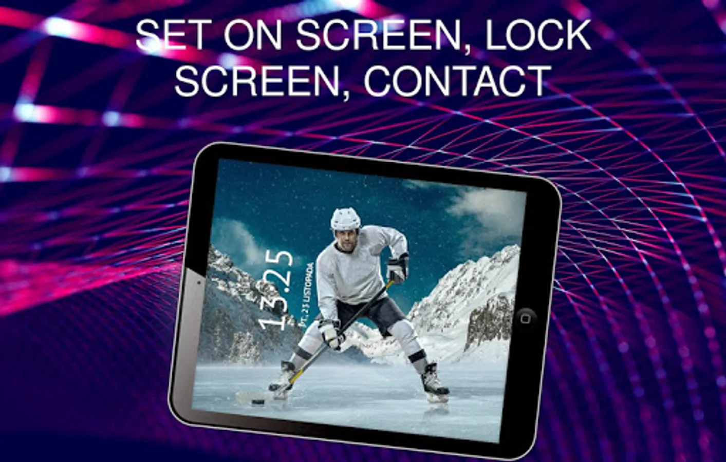 - Possibility to create own base of favorite wallpapers with hockey players, hockey sticks and many more