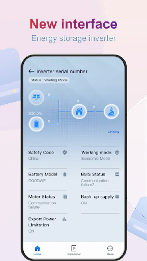 SolarGo APP is a configuration tool for GOODWE inverters and EV charging. It can configure the device locally via a direct connection over on-site Wi-Fi/Bluetooth. SolarGo APP can help installers complete the installation of iinverters and EV charging when necessary.