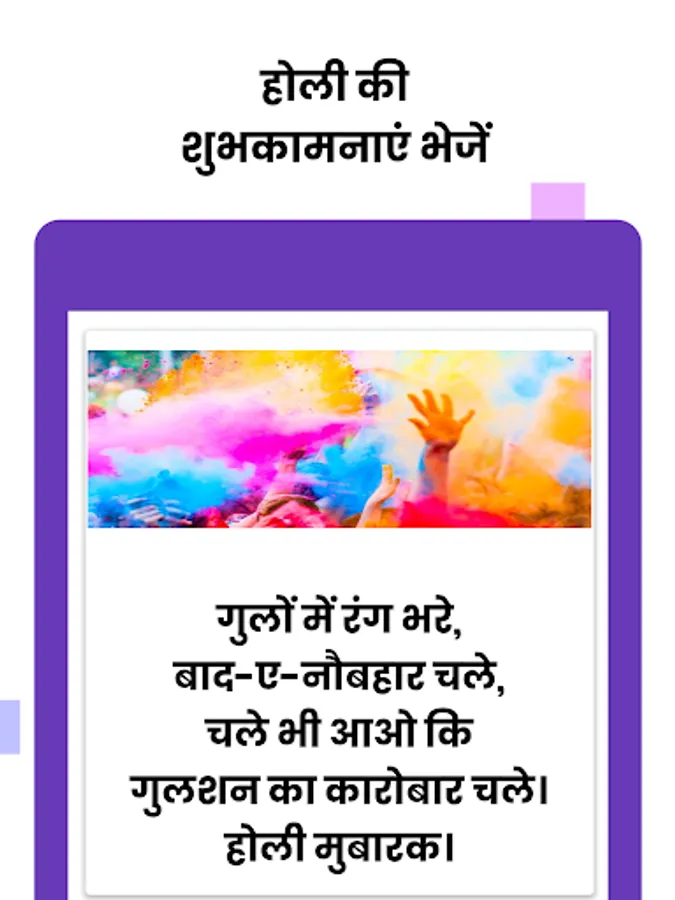 Holi Photocard application. Make an impressive looking Holi photo card with adjusting your images Holi Photocard 2022 in App. Once you select the Holi card and edit your picture on it at that moment if you would like to change the Holi card then the option is available.
